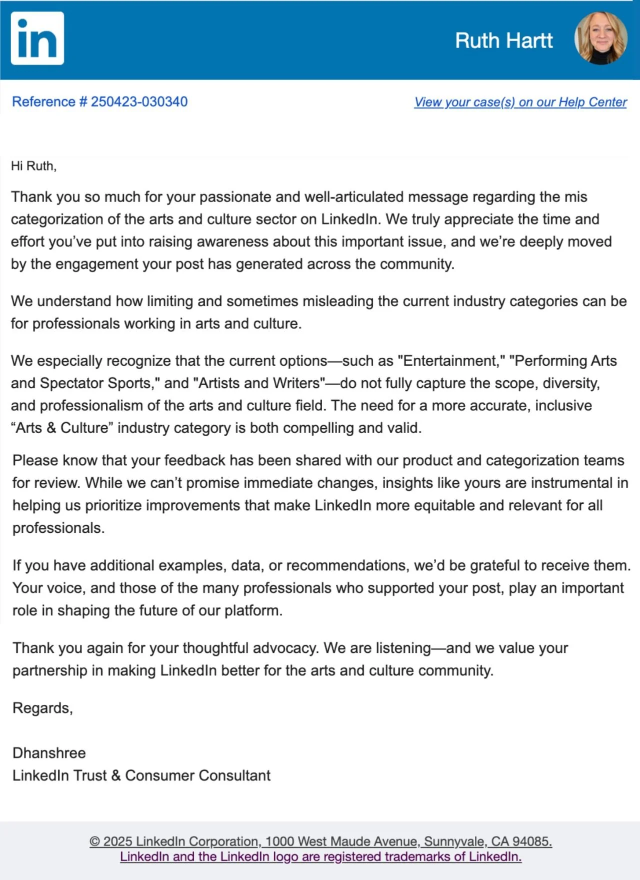 Open Letter to LinkedIn: Arts & Culture Belongs Here